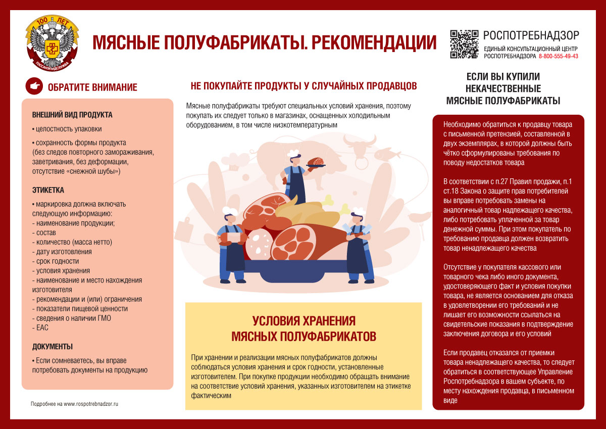 Роспотребнадзор напоминает, что мясные продукты являются важным источником белка и железа. В то же время они содержат достаточно большое количество жира, и это, в основном, насыщенные жирные кислоты, которые повышают риск развития гиперхолестеринемии и заболеваний сердечно-сосудистой системы. Один из принципов здорового питания ВОЗ относится к рациональному употреблению мясных продуктов, при котором необходимо по возможности заменить мясо и мясные продукты с высоким содержанием жира на бобовые, рыбу, птицу, яйца или постные сорта мяса. При этом порции мяса, рыбы или птицы должны быть небольшими. По статистике, каждый житель России употребляет за год около 40 кг мясопродуктов, по крайней мере, так их называют производители. При этом в состав мясных полуфабрикатов таких как сосиски входит большое количество пищевых добавок нитраты, нитриты, фосфаты, кошениль, каррагинан – всё это делает сосиски такими ароматными, вкусными и привлекательными на вид. От таких добавок может очень быстро развиться пищевая зависимость, особенно у детей. Диетологи не рекомендуют употреблять готовые колбасные изделия чаще 1-2 раз в неделю. Действующий ГОСТ 33673-2015 «Изделия колбасные вареные. Общие технические условия (с Поправкой)» подразделяет сосиски на группы: В мясных изделиях категории А содержание белка не менее 10%, категории Б – 8%, а вот жира в них содержится очень много. В изделиях категории А – до 36%, категории Б – до 45%. Содержание соли колеблется от 1,5 до 2,8 г. на 100гр. продукта. И это при суточной норме соли – не более 5 грамм, с учетом соли, входящей во все остальные продукты суточного рациона. Даже в сосисках для детского питания соли много – до 1г на 100 г продукта. Выбирая в магазине сосиски или сардельки внимательно изучите маркировку. Отдайте предпочтение изделиям категории А или Б – эта информация должна быть на этикетке. Кроме того, проверьте сроки годности и условия хранения. колбасные изделия должны храниться в холодильнике, при температуре не выше +6°С. Обратите внимание, что к продаже не допускаются колбасные изделия: Диетологи не рекомендуют употреблять готовые колбасные изделия чаще 1-2 раз в неделю. Важно! Не покупайте продукты у случайных продавцов В соответствии с Правилами продажи отдельных видов товаров, утвержденных Постановлением Правительства РФ от 31.12.2020 N 2463 (далее Правила продажи) продавец обязан довести до сведения покупателя фирменное наименование (наименование) своей организации, место ее нахождения (юридический адрес) и режим работы, размещая указанную информацию на вывеске организации. Продавец – индивидуальный предприниматель должен предоставить покупателю информацию о государственной регистрации и наименовании зарегистрировавшего его органа. Указанная информация размещается в удобных для ознакомления местах. Аналогичная информация также должна быть доведена до сведения покупателей при осуществлении торговли во временных помещениях, на ярмарках, с лотков и т.д. При осуществлении разносной торговли представитель продавца должен иметь личную карточку, заверенную подписью лица, ответственного за ее оформление, и печатью продавца, с фотографией, указанием фамилии, имени, отчества представителя продавца, а также сведений о продавце. Если этой информации нет, то у такого продавца лучше продукцию не покупать.