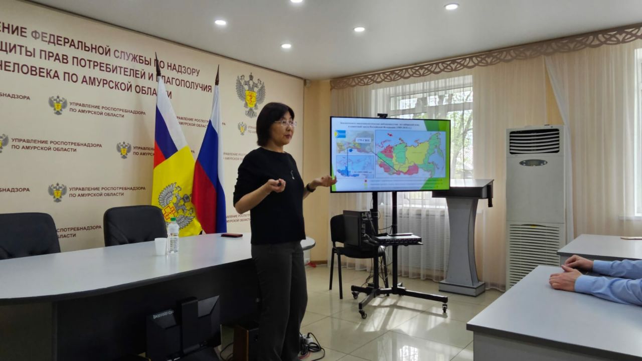 19 мая в Управлении Роспотребнадзора прошёл семинар с участием научных сотрудников Иркутского научно-исследовательского Противочумного Института. На семинаре специалисты института поделились ценным практическим опытом работы с особо опасными инфекциями, организацией противоэпидемических мероприятий и проведением лабораторных исследований. В семинаре приняли участие сотрудники Управления Роспотребнадзора и ФБУЗ "Центр гигиены и эпидемиологии" по Амурской области, а также специалисты Управления ветеринарии и Амурской областной ветеринарной лаборатории