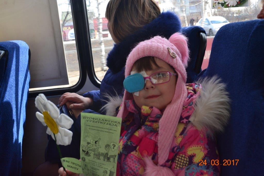 Амурчане смогли получить информацию о пользе вакцинации против туберкулеза и прохождения флюорографии в «Автобусе Здоровья». В знак поддержки общественности в борьбе против туберкулеза амурчанам вручался символ чистого дыхания – Ромашка.