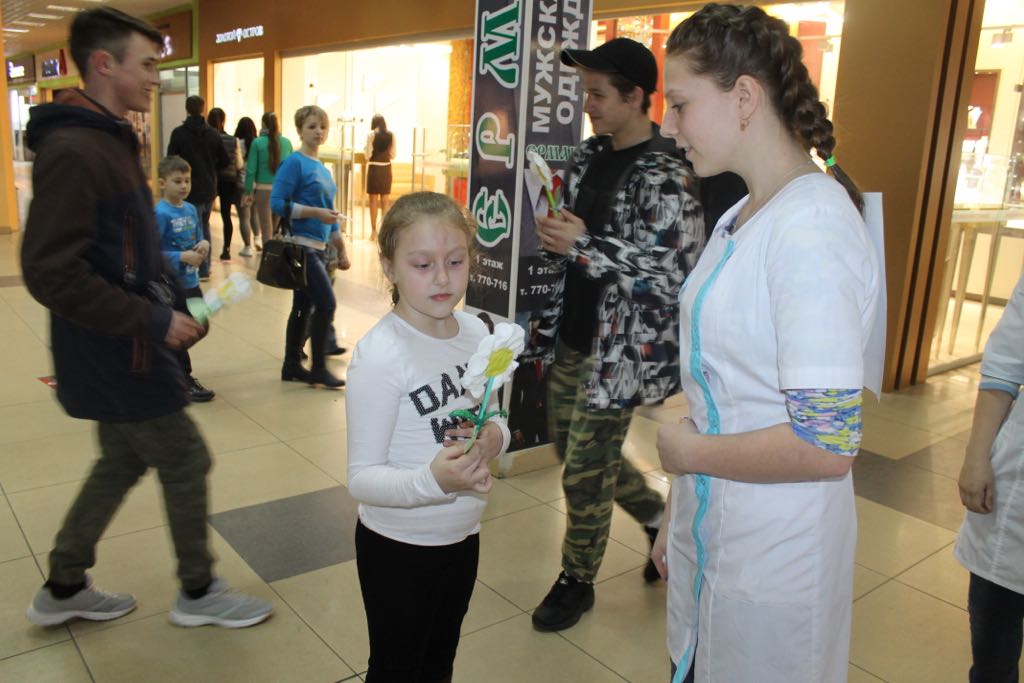 При поддержке администрации ГАУЗ АО «Городская клиническая больница» и ГАУЗ АО «Детская городская клиническая больница», участииклоуновШоу-театра «Котовасия» проведена акция «Ромашка-символ чистого дыхания» для детей и их родителей и лекция для будущих мам о пользе вакцинации против туберкулеза и необходимости проведения пробы Манту. Всем участникам вручен символ чистого дыхания «Ромашка».