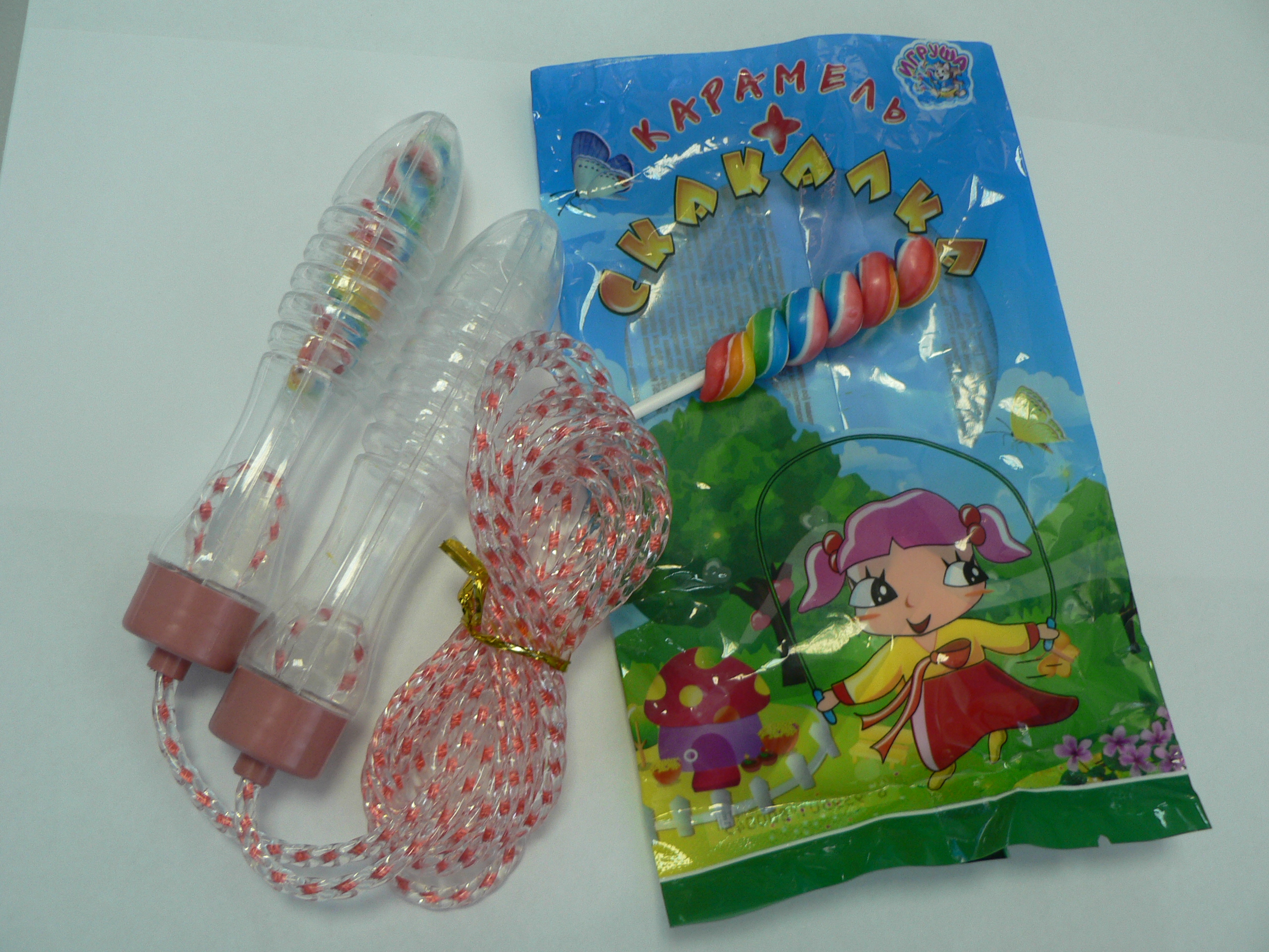 Управлением Роспотребнадзора по Амурской области при проверке ООО «Свет», ООО «Прод Лайн», ЗАО «Кристалл-Амур» выявлены игрушки «Скакалка» не соответствующие требованиям безопасности, установленным СанПиН 2.4.7/1.1.2651-10 «Гигиенические требования к одежде для детей, подростков и взрослых» по уровню запаха и индексу токсичности. При норме не выше 2 балловуровень запаха составил 4 балла, уровень токсичности 61,8% при нормативе 70-120%. Изготовлена игрушка «Скакалка» в КНР,импортер в России ООО «Свитексим» , 125373 г.Москва, Походный проезд, д.18 стр.4. Игрушка «Скакалка» входила в набор «Карамель + скакалка»карамель фруктовая (со вкусом фруктов) «Игруша» с игрушкой» ив набор «Мармелад жевательный в сахарной глазури (со вкусом персика, ананаса, апельсина, клубники, винограда, дыни, яблока) «Игрушка с «игрушкой»