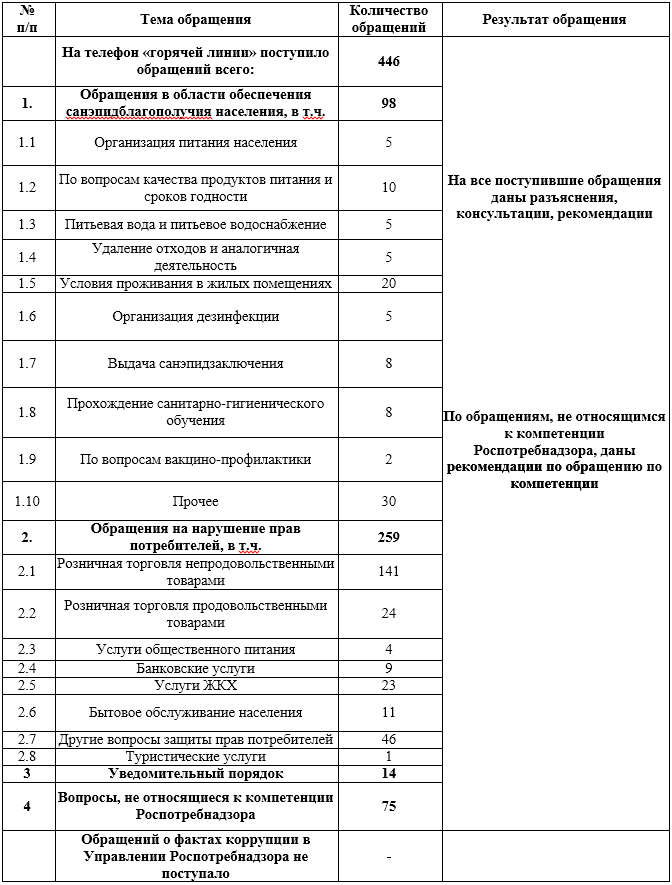 Об итогах работы «горячей линии» за ноябрь 2018 года